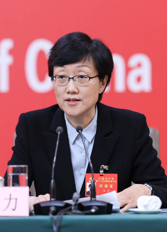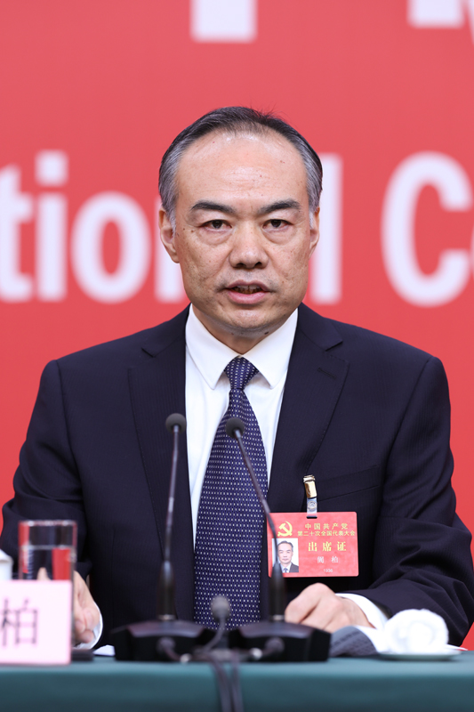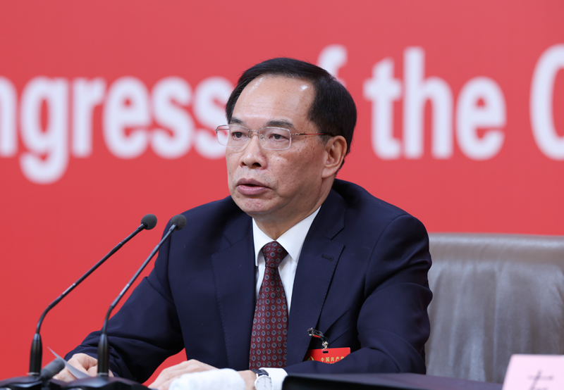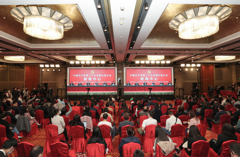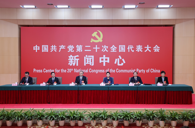 10月19日,中国共产党第二十次全国代表大会新闻中心举行记者招待会。中央政法委副秘书长訚柏,最高人民法院党组副书记、分管日常工作的副院长、一级大法官贺荣,最高人民检察院党组副书记、分管日常工作的副检察长、一级大检察官童建明,公安部党委委员、副部长、国家移民管理局党组书记、局长许甘露,司法部党组成员、副部长左力围绕“坚持以习近平法治思想为指引 努力建设更高水平的法治中国”主题与记者交流。