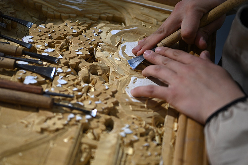 当日,“木里千秋·雕绘春景——晋作木雕作品展”在山西省太原市文化馆开展。本次展览旨在促进非遗项目走进现代生活,展出具有黄河流域特色的晋作木雕作品百余件。展览将持续到3月12日。