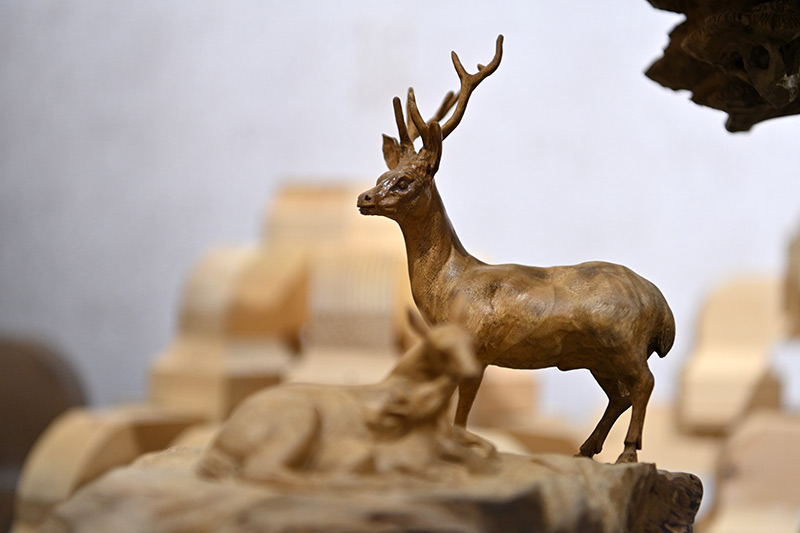 2月23日在太原市文化馆拍摄的晋作木雕作品。
