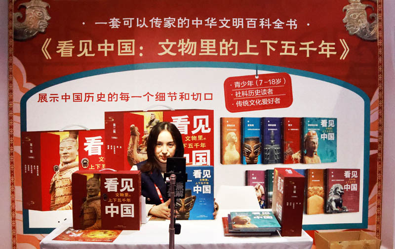 2月24日,工作人员在直播推介《看见中国:文物里的上下五千年》。