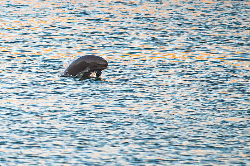 2月19日,在湖北省宜昌市江边,长江江豚在水中捕鱼。