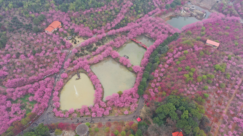 3月4日拍摄的常宁市罗桥镇樱花园景色(无人机照片)。