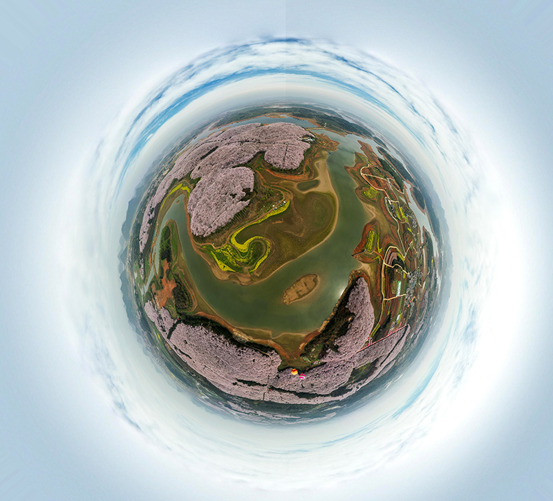 这是3月21日拍摄的贵州省贵安新区樱花园(无人机全景照片)。