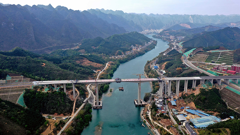 当日,由广西交通投资集团投资建设、中交二航局承建的广西最大跨径六车道连续刚构桥——天峨至巴马高速公路(简称天巴高速)红水河特大桥实现双幅合龙。红水河特大桥是天巴高速项目的控制性工程,位于广西河池市天峨县六排镇红水河上游,全长1099米。
