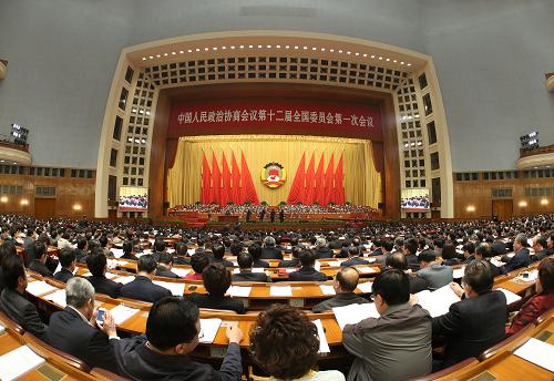 3月7日,全国政协十二届一次会议在北京人民大会堂举行第二次全体会议。新华社记者 陈建力 摄