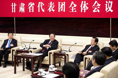 3月10日,中共中央政治局常委、全国政协十二届一次会议主席团会议主持人俞正声参加十二届全国人大一次会议甘肃代表团的审议。新华社记者李学仁摄
