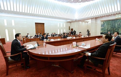3月13日,十二届全国人大一次会议主席团常务主席第四次会议在北京人民大会堂举行。大会主席团常务主席张德江主持会议。新华社记者 马占成 摄