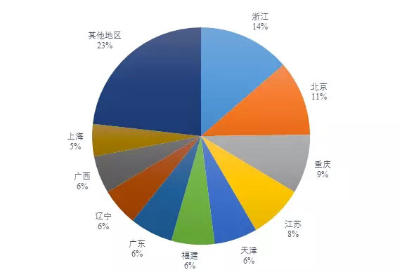 平台数据显示,殡葬行业举报受理量较多的地区主要有浙江、北京、重庆、江苏、天津、福建、广东、辽宁、广西和上海。