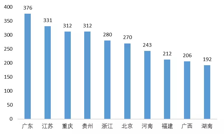 本月全国12358价格监管平台共受理交通运输行业价格举报4088件,同比下降19.70%,环比下降3.01%,举报、投诉、咨询量同比分别下降15.89%、34.92%、14.38%。从地区分布来看,排名前十的省份依次是广东(376件)、江苏(331件)、重庆(312)、贵州(312件)、浙江(280件)、北京(270件)、河南(243件)、福建(212件)、广西(206件)、湖南(192件)。