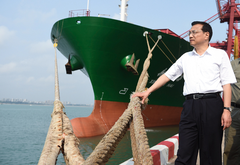 【李克强考察海口港:要用开放倒逼改革】李克强总理11日到海口港码头了解货物吞吐量及发展规划等情况。他说,海南省四面环海,地处改革开放前沿。作为中国最大的经济特区,海南的开放要从国家层面通盘考虑,力争成为国家对外开放的重要支撑点,要敢闯敢试,用开放带动、促进改革,倒逼改革。