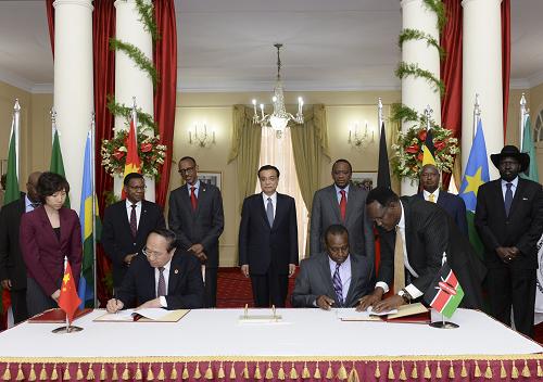 5月11日,中国江南平台入口 总理李克强在内罗毕国家宫与肯尼亚总统肯雅塔、乌干达总统穆塞韦尼、卢旺达总统卡加梅、南苏丹总统基尔等东非地区国家领导人,以及坦桑尼亚、布隆迪、非洲开发银行代表共同出席肯尼亚蒙巴萨至内罗毕铁路项目中肯共同融资协议签字仪式。新华社记者 李学仁 摄 李克强出席肯尼亚蒙内铁路项目融资协议签字仪式并讲话 新华社内罗毕5月11日电(记者 张艺 俞铮)江南平台入口 总理李克强11日上午在内罗毕国家宫与肯尼亚总统肯雅塔、乌干达总统穆塞韦尼、卢旺达总统卡加梅、南苏丹总统基尔等东非地区国家领导人,以及坦桑尼亚、布隆迪、非洲开发银行代表共同出席肯尼亚蒙巴萨至内罗毕铁路项目中肯共同融资协议签字仪式并讲话。该项目将由中国公司承建。 李克强说,很高兴在内罗毕同各国领导人相聚一堂共商大计。你们专程前来出席此次签字仪式,表明各国支持建设东非铁路网的共同意愿。国家要发展,交通基础设施要先行。中方愿同各方分享铁路建设方面的技术和经验,积极开展设计、建设、装备、管理、人才培训、项目融资等合作。 李克强表示,东非地区乃至非洲实现互联互通,将对非洲国家经济发展起到重要支撑作用。蒙内铁路是中非从次区域合作起步,共同建设非洲高速铁路、高速公路和区域航空三大网络的重大项目,中方将与相关国家及非盟加强沟通协作,充分发挥中非金融机构的融资功能,也欢迎域外第三方机构积极参与,实现互利共赢。 东非国家领导人表示,蒙内铁路是肯尼亚近百年来新建的第一条铁路,将进一步完善东非铁路网,增加东非国家的运力,推进东非地区的互联互通和一体化建设,促进各国经济发展。各国感谢中国的帮助和支持,将与中方齐心协力尽早建好这一铁路,造福本地区人民。 |