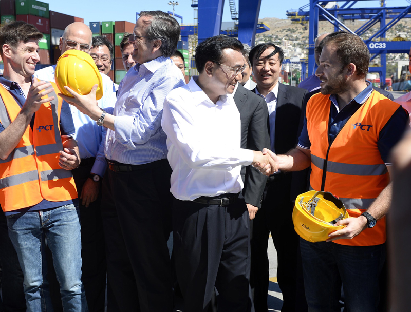 【李克强:把比港打造成中希中欧合作的明珠】李克强总理20日与希腊总理共同考察了中远比雷埃夫斯集装箱码头。李克强说,中希在比港的合作互利双赢,有利于中希两国,有利于稳定、繁荣、平衡发展的欧洲,也有利于世界。中方愿与希方携手并进,使比港这颗合作的明珠闪烁更加夺目的光芒。