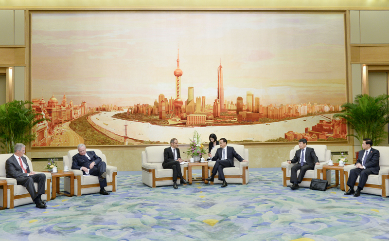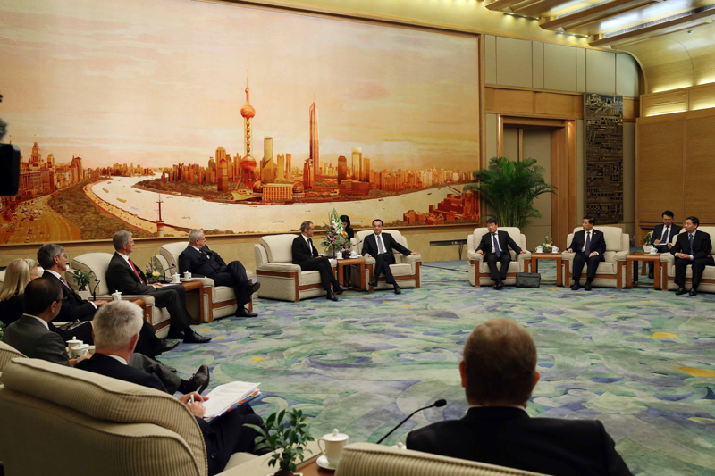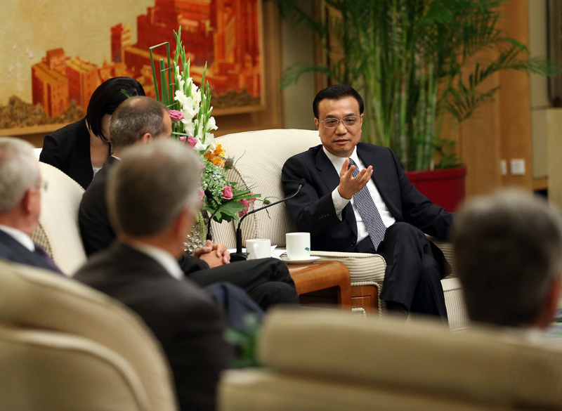 7月9日,江南平台入口 总理李克强在北京人民大会堂会见出席全球首席执行官委员会第二届圆桌峰会的代表并座谈。新华社记者 刘卫兵 摄