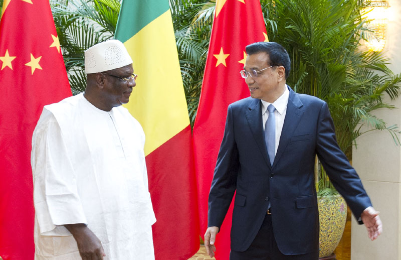 李克强首先转达了习近平主席对凯塔总统的亲切问候。李克强说,中马始终平等相待、相互支持,两国友好历久弥坚。中国支持马里为促进民族和解、恢复发展经济所做努力,愿同马方密切高层交往和人文交流,扩大农业、矿业、基础设施建设等合作,真心诚意地帮助马里提高自主发展能力。中方愿继续参与在马里的维和行动,共同开创中马关系新局面。