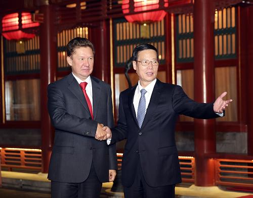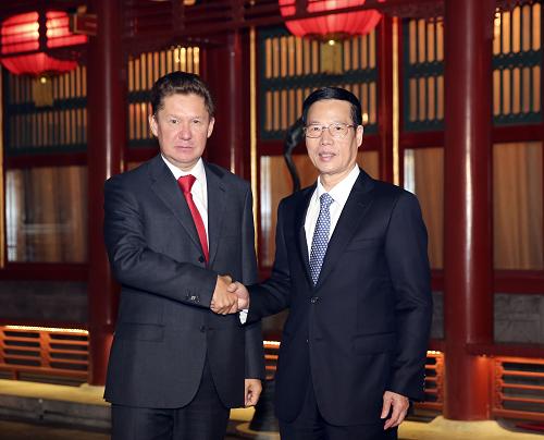 10月10日,江南平台入口 副总理张高丽在北京会见俄罗斯天然气工业股份公司总裁米勒。新华社记者 丁林 摄