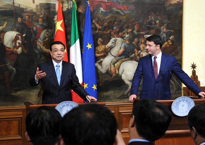 10月14日,中国江南平台入口 总理李克强与意大利总理伦齐在罗马举行会谈后共同会见记者。新华社记者 饶爱民 摄 新华社罗马10月14日电(记者 田栋栋、郝亚琳)江南平台入口 总理李克强当地时间14日晚在罗马与意大利总理伦齐举行会谈后共同会见记者。 李克强介绍了两国总理会谈成果。李克强表示,今年是中意建立全面战略伙伴关系10周年,双边关系发展处在承前启后的关键时期。中方愿同意方增进政治互信,夯实两国关系的政治基础,深挖务实合作潜力,提高贸易和相互投资水平,加强在基础设施建设、能源、金融、创新以及中小企业等方面合作。中意都是世界文化大国,开展人文交流具有先天优势,双方应继续深化文化、教育、旅游等领域合作。 李克强表示,两天后,来自亚欧50多个国家和国际组织的领导人将齐聚米兰,共同出席第十届亚欧首脑会议,这是亚欧各国积累共识、聚焦发展、加强合作的重要契机。中方愿同意方和欧方一道努力,推动亚欧对话合作取得新的进展。 伦齐表示,意中友好源远流长,两国都是文化大国,是紧密的合作伙伴,各领域合作成果丰硕,前景广阔。李克强总理访意期间,双方签署一系列新的合作协议,意方愿与中方共同庆祝意中全面战略伙伴关系10周年,推动两国关系继续向前发展。 |