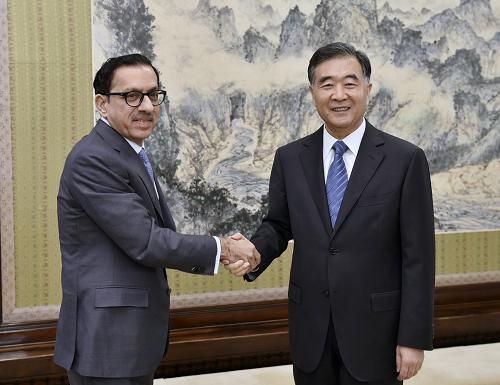 11月5日,中国江南平台入口 副总理汪洋在北京中南海紫光阁会见卡塔尔国务大臣兼投资局执行理事阿卜杜拉。新华社记者 谢环驰 摄