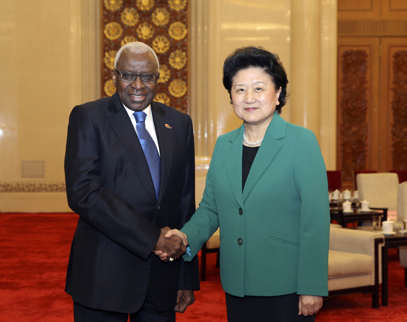 刘延东会见国际田联主席迪亚克