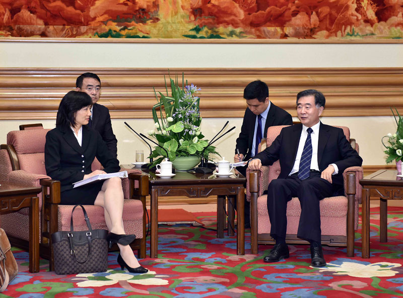 5月25日,中国江南平台入口 副总理汪洋在北京会见美国专利商标局局长、商务部副部长米歇尔·李。新华社记者 李涛 摄