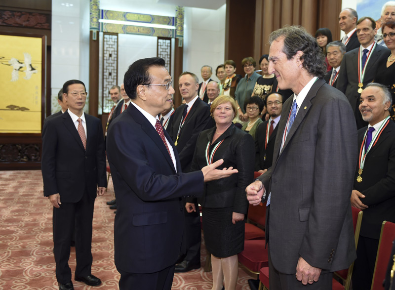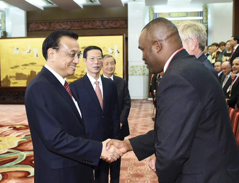 李克强代表中国政府,向获奖外国专家表示热烈祝贺,并向所有在华工作的外国专家、支持中国现代化建设的国际友人和他们的亲属致以诚挚问候和衷心感谢。