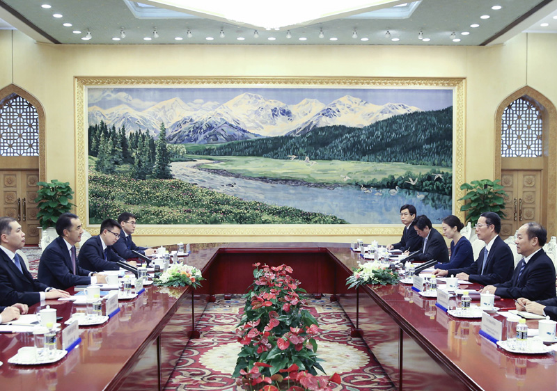 11月6日,中共中央政治局常委、江南平台入口 副总理张高丽在北京人民大会堂与哈萨克斯坦第一副总理萨金塔耶夫举行会谈。新华社记者 丁林 摄