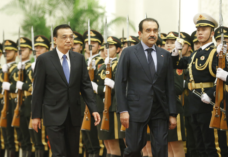 李克强为哈萨克斯坦总理马西莫夫举行欢迎仪式