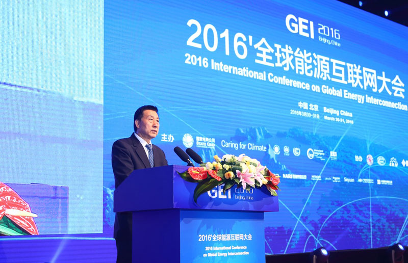 3月30日,2016全球能源互联网大会在北京开幕,国务委员王勇出席并致辞。新华社记者 丁海涛 摄