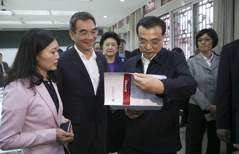 李克强15日来到北京大学国家发展研究院,了解到他们通过大数据对9大行业、100多个类别的“新经济”进行分析研究,并推出“新经济指数”。总理称赞道,这是一项开创性工作。仅靠传统动能难以保持我国经济中高速增长,必须积极培育新动能,促进我国新经济发展。