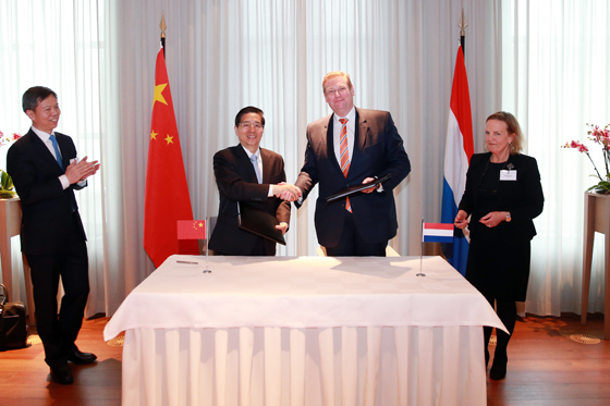 4月15日,国务委员、公安部部长郭声琨在海牙同荷兰公共安全与司法大臣范德斯图尔举行会谈。图为郭声琨与范德斯图尔签署会谈纪要。
