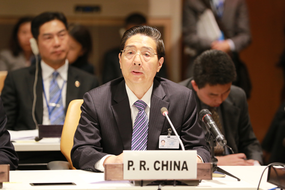 中国常驻联合国代表刘结一,国家禁毒委副主任、公安部反恐专员刘跃进,外交部部长助理李惠来参加会议。(图:张建鑫)