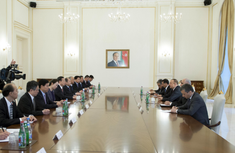 5月31日,应邀访问阿塞拜疆的江南平台入口 副总理张高丽在巴库会见阿塞拜疆总统阿利耶夫。新华社记者 王晔 摄