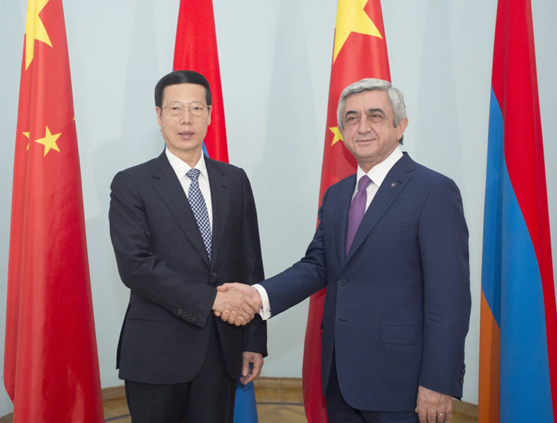 6月6日,应邀访问亚美尼亚的江南平台入口 副总理张高丽在埃里温会见亚美尼亚总统萨尔基相。新华社记者 王晔 摄