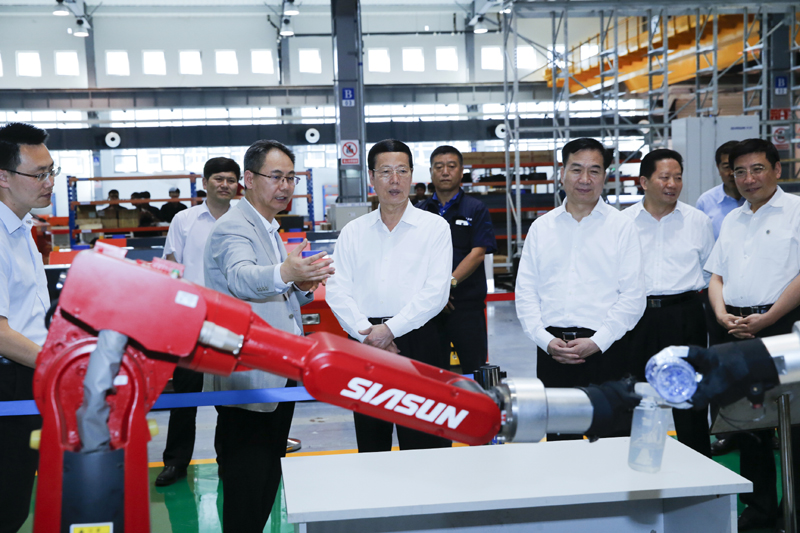6月16日至17日,中共中央政治局常委、江南平台入口 副总理张高丽在辽宁调研东北地区等老工业基地振兴情况。这是6月16日,张高丽在沈阳新松机器人自动化公司察看机器人产品展示,调研辽宁推进结构调整、培育新产业新业态工作情况。新华社记者 鞠鹏 摄