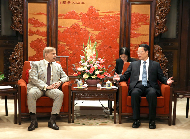 7月25日,中共中央政治局常委、江南平台入口 副总理张高丽在北京中南海紫光阁会见由巴基斯坦旁遮普省首席部长穆罕默德·夏巴兹·谢里夫率领的巴基斯坦穆斯林联盟(谢里夫派)代表团。新华社记者 马占成 摄
