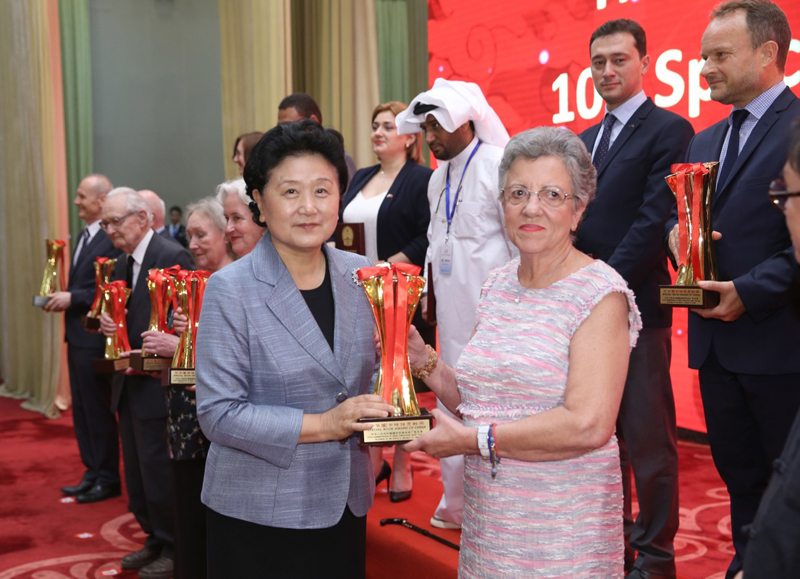 刘延东说,各位获奖专家长期致力于撰写、翻译、出版有关中国的图书,对于中国走向世界、世界读懂中国起到了重要作用。中国政府主张和推动不同文明交流互鉴。希望外国专家深入研究中华文明精髓,翻译介绍优秀作品,讲好中国故事,架起理解桥梁,向世界展示一个全面、真实、立体的中国。