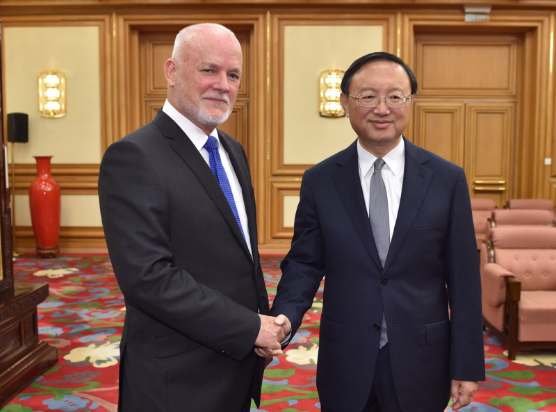 8月26日,中国国务委员杨洁篪在北京中南海会见第71届联合国大会主席汤姆森。新华社记者 高洁 摄