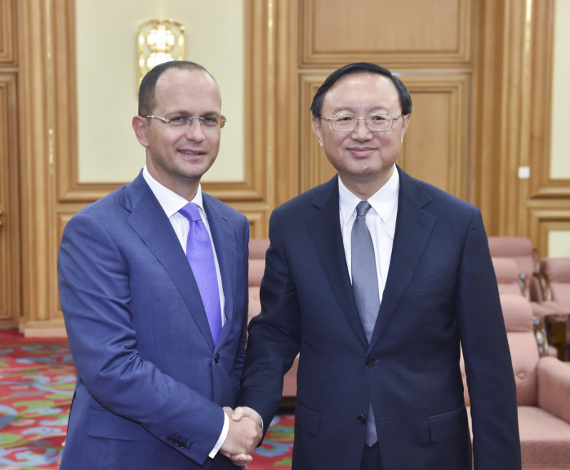 8月26日,中国国务委员杨洁篪在北京中南海会见阿尔巴尼亚外长布沙蒂。新华社记者 高洁 摄