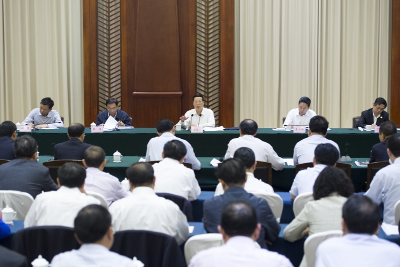 这是11月9日,张高丽在景洪市主持召开座谈会,学习贯彻党的十八届六中全会精神,听取地方和企业对绿色发展和经济工作的意见建议。新华社记者 王晔 摄