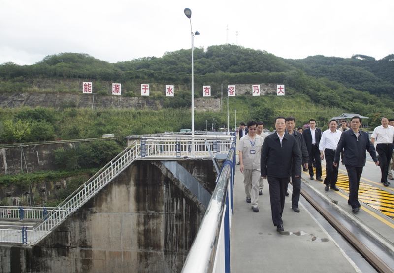 这是11月8日,张高丽在西双版纳考察澜沧江景洪水电站,调研江河水资源保护利用。新华社记者 王晔 摄
