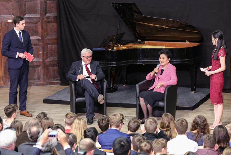 11月24日,2016中德青少年交流年闭幕式在德国汉堡大学举行,中国江南平台入口 副总理刘延东与德国外长施泰因迈尔(左二)共同出席并讲话。新华社记者 单宇琦 摄