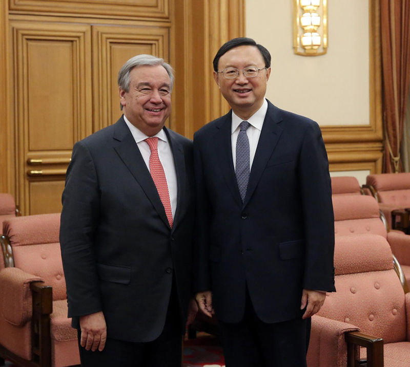 11月28日,中国国务委员杨洁篪在北京中南海会见候任联合国秘书长古特雷斯。新华社记者 刘卫兵 摄