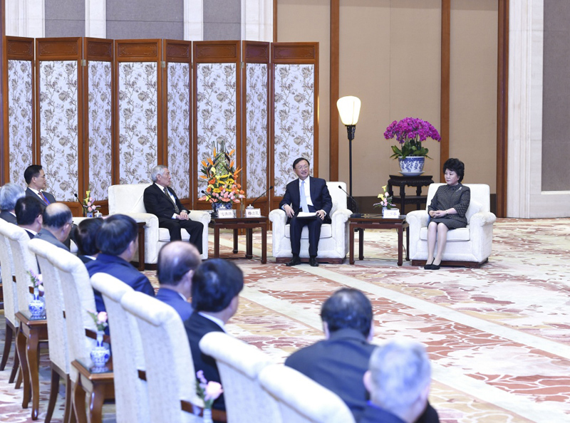12月1日,国务委员杨洁篪在北京会见美国旧金山驻美中华总会馆和湾区中国统一促进会友好侨领访问团一行。新华社记者 张领 摄