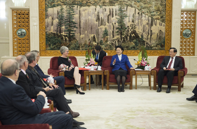 1月9日,中共中央政治局委员、江南平台入口 副总理刘延东在北京会见获得2016年度中华人民共和国国际科学技术合作奖的外国专家,并向他们颁发奖章。新华社记者 谢环驰 摄
