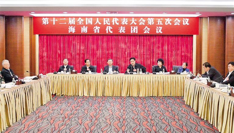 3月5日下午,十二届全国人大五次会议海南代表团在住地举行全体会议,审议李克强总理所作的政府工作报告。