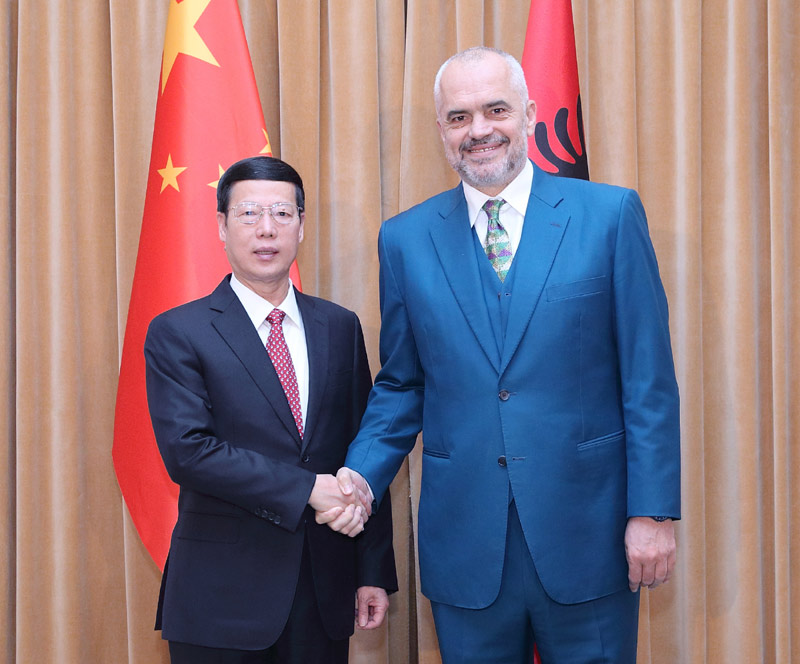 同日,张高丽还同阿尔巴尼亚总理拉马举行会谈。张高丽转达了李克强总理的亲切问候和良好祝愿。他说,中方愿同阿方加强发展战略对接和各领域务实合作,就合作思路、合作环境、合作机制、合作方式、合作项目和合作效果等进行深入研究探讨,找准合作切入点,扩大利益交汇点,实现共同发展和繁荣。要不断扩大双边贸易和相互投资规模,中方愿进一步扩大进口阿方优势产品,继续鼓励本国企业扩大对阿投资,积极参与和跟进阿方正在规划实施的公路、水电站、经济开发区等基础设施和能源领域重大项目,争取实现大项目合作突破。要密切人文交流,积极推进影视、教育、旅游等领域合作,夯实两国关系的民意基础。