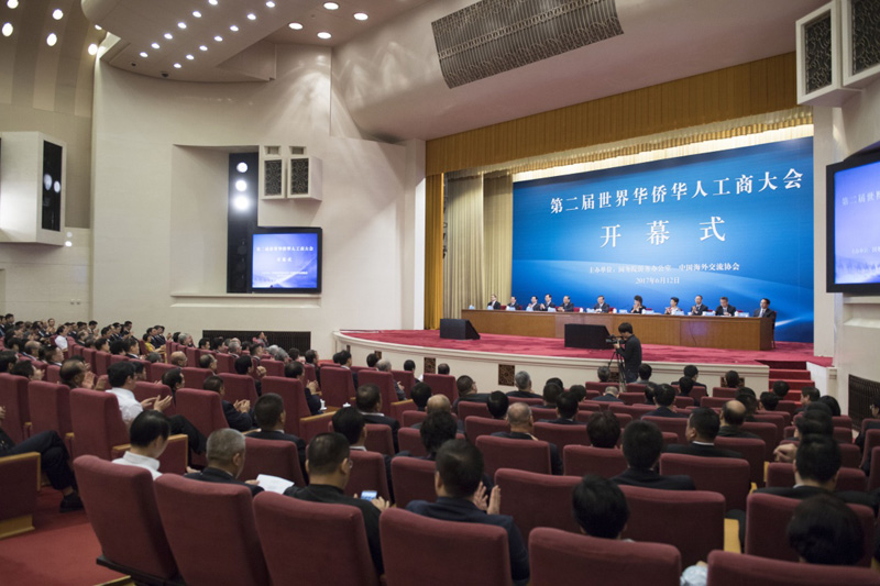 6月12日,“第二届世界华侨华人工商大会”在北京开幕。国务委员杨洁篪出席开幕式并致辞。新华社记者 李学仁 摄