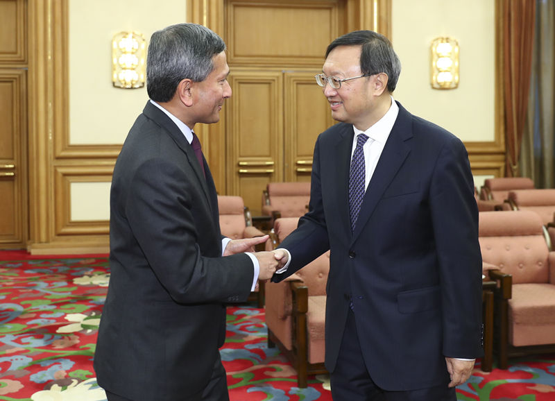 6月12日,国务委员杨洁篪在北京中南海会见新加坡外长维文。新华社记者 谢环驰 摄