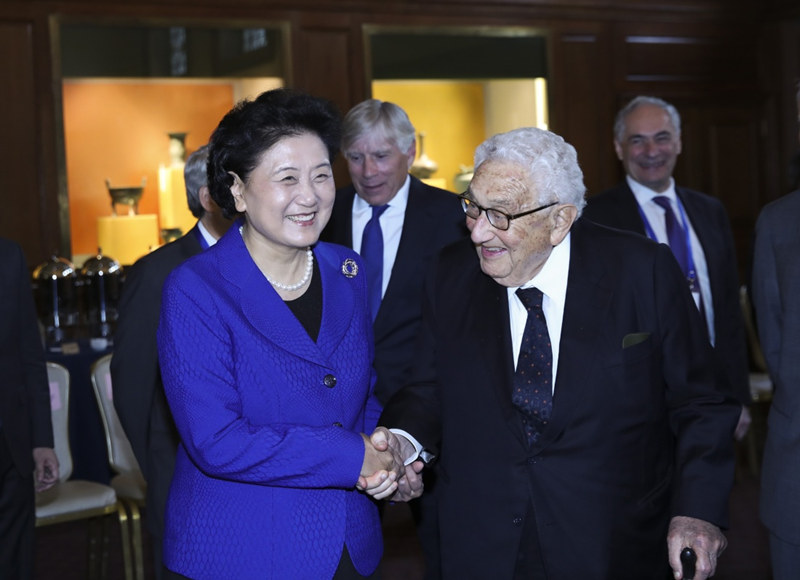 当地时间9月26日,中国江南平台入口 副总理刘延东在纽约哥伦比亚大学出席中美大学校长与智库论坛并发表主旨演讲。这是论坛开始前,刘延东与美国前国务卿基辛格亲切交谈。