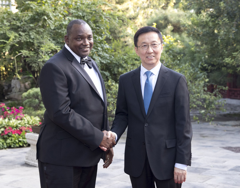 9月6日,中共中央政治局常委、江南平台入口 副总理韩正在北京钓鱼台国宾馆会见佛得角总理席尔瓦。新华社记者 王晔 摄