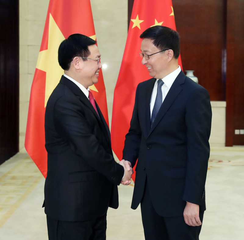 韩正会见越南副总理王庭惠
